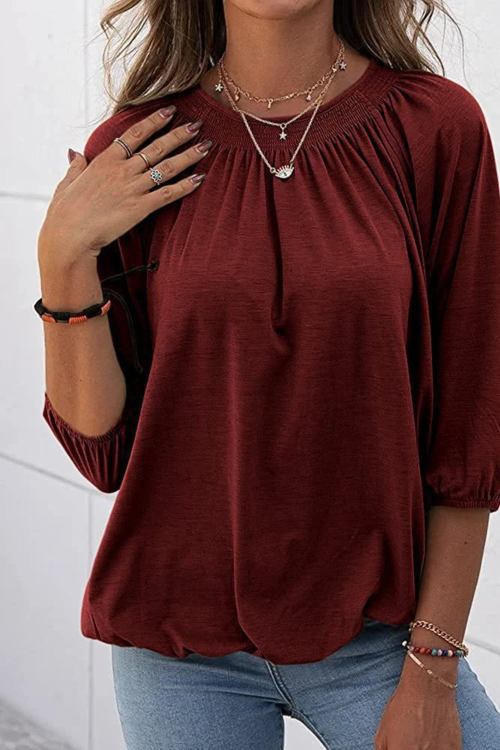 Gathered Detail Round Neck T-Shirt