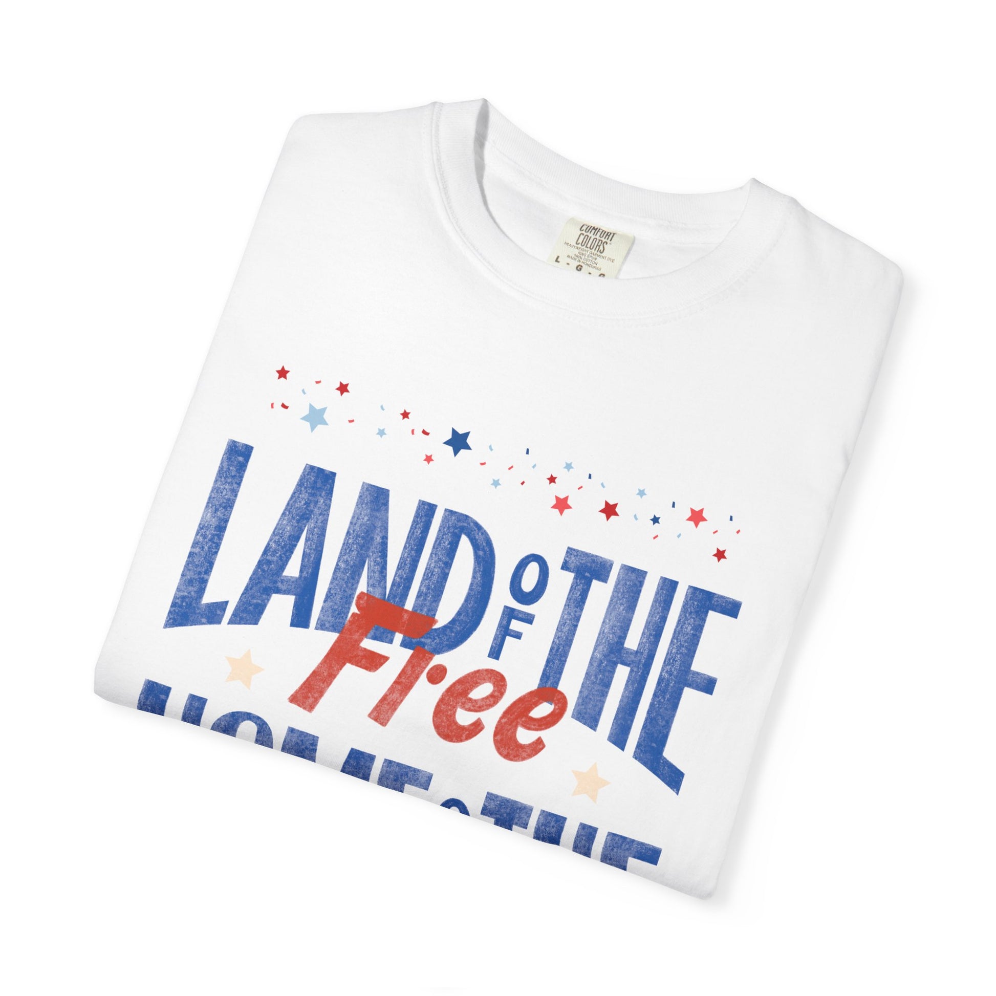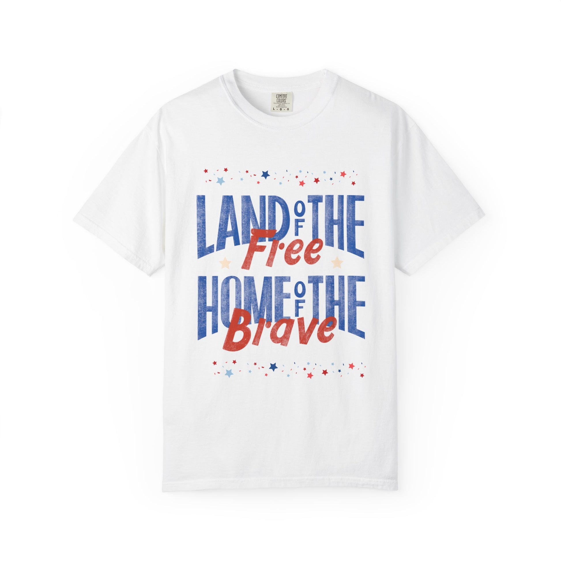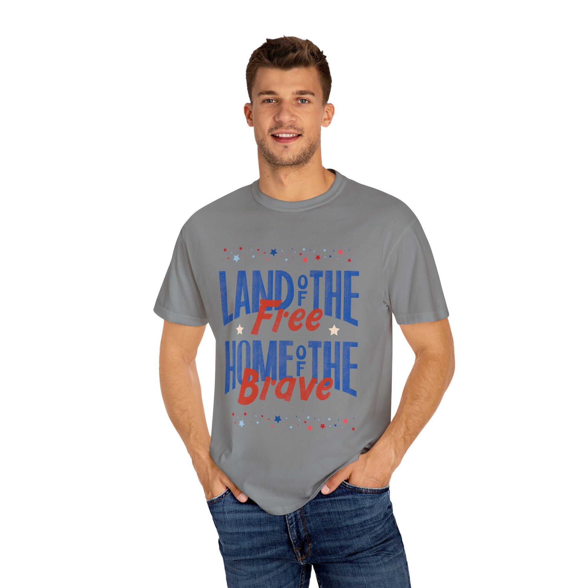 Celebrate your love for the land with this stylish unisex garment-dyed t-shirt, featuring a bold and heartfelt design that reads "Land of the Free, Home of the Brave." This tee exudes a relaxed vibe, making it perfect for casual outings or semi-formal gatherings. Ideal for those who appreciate comfort and classic style, this shirt fits seamlessly into various life moments, whether it's a family barbecue, a picnic at the park, or a Fourth of July celebration. Perfect for patriotic holidays, this shirt is also a thoughtful gift for veterans or anyone who cherishes freedom and patriotism.
