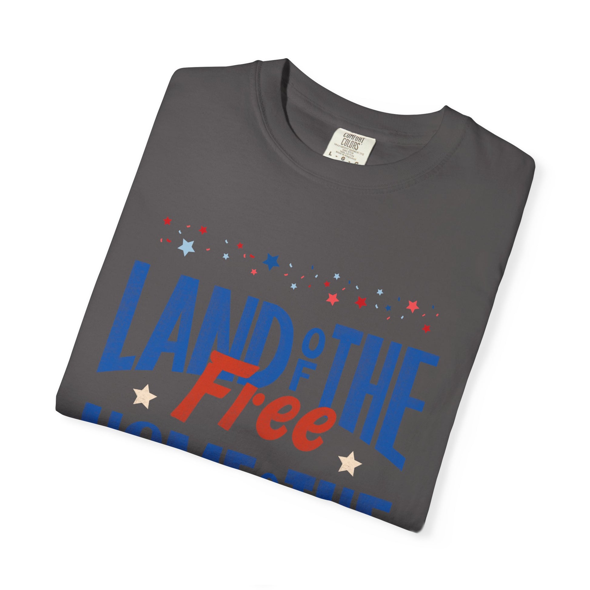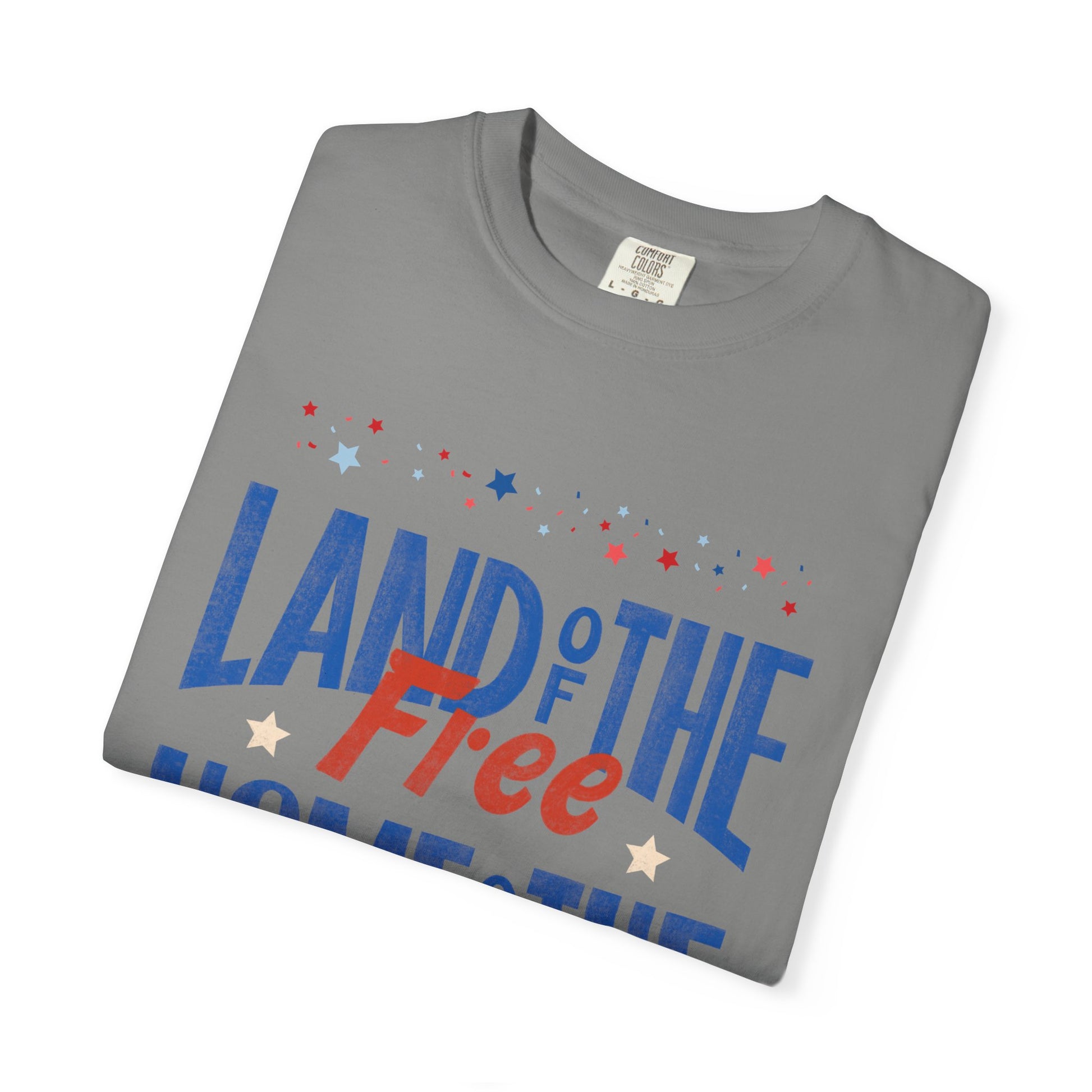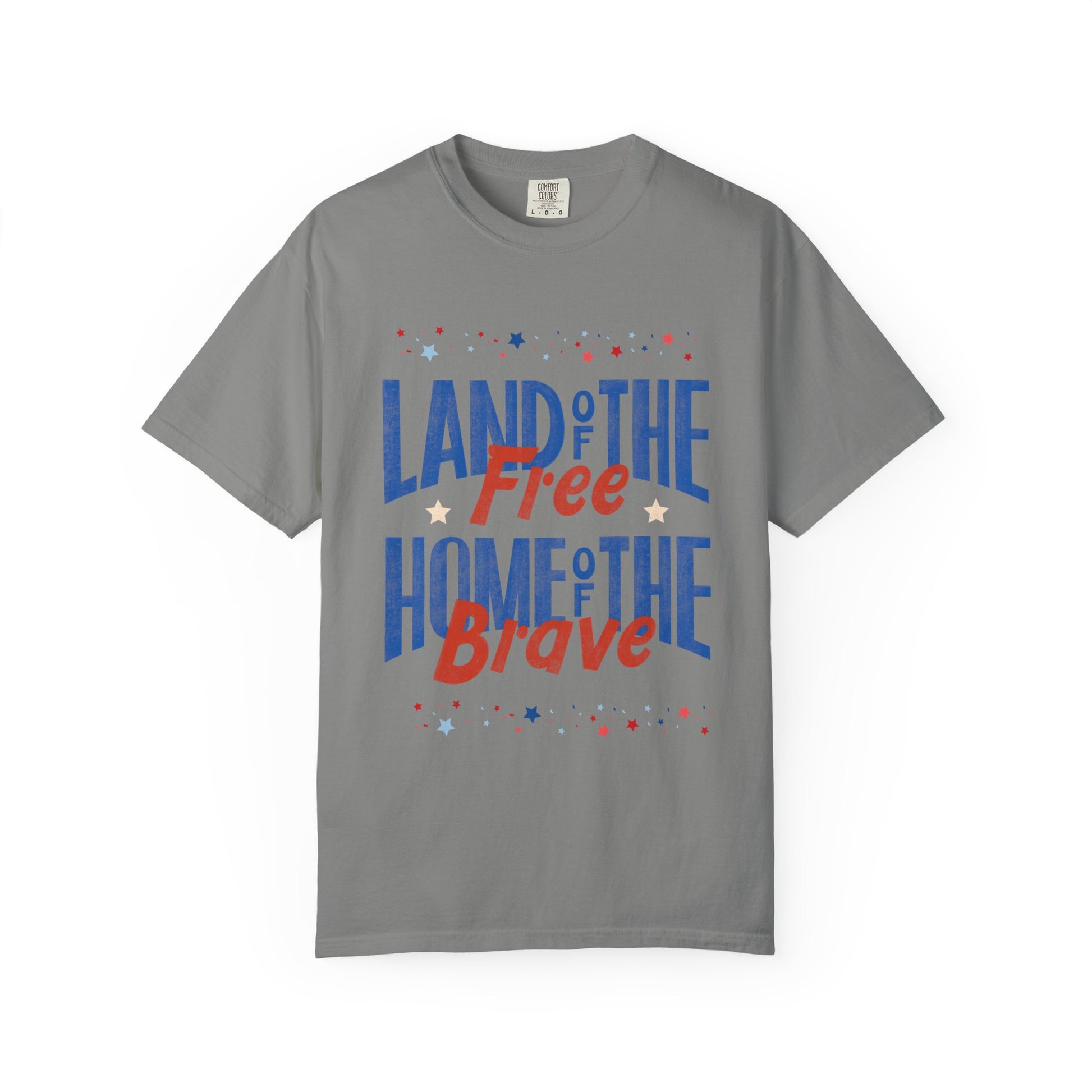 Celebrate your love for the land with this stylish unisex garment-dyed t-shirt, featuring a bold and heartfelt design that reads "Land of the Free, Home of the Brave." This tee exudes a relaxed vibe, making it perfect for casual outings or semi-formal gatherings. Ideal for those who appreciate comfort and classic style, this shirt fits seamlessly into various life moments, whether it's a family barbecue, a picnic at the park, or a Fourth of July celebration. Perfect for patriotic holidays, this shirt is also a thoughtful gift for veterans or anyone who cherishes freedom and patriotism.